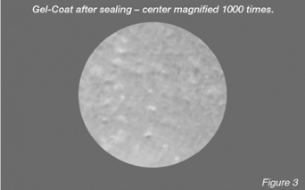 With a machine buffer and clean pads (keep clean to avoid unnecessary scratches) apply two coats of TR-301 Sealer Glaze. This application further removes fine scratches, fills in and closes over minute porosity, and produces a high gloss, reflective surface (see Figure 3) which is ideally receptive to wax. Each coat should be buffed in opposite directions; once vertically and once horizontally, to insure complete coverage.